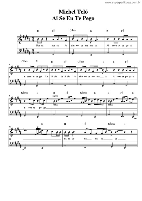 Super Partituras Ai Se Eu Te Pego v.4 (Michel Teló), com cifra