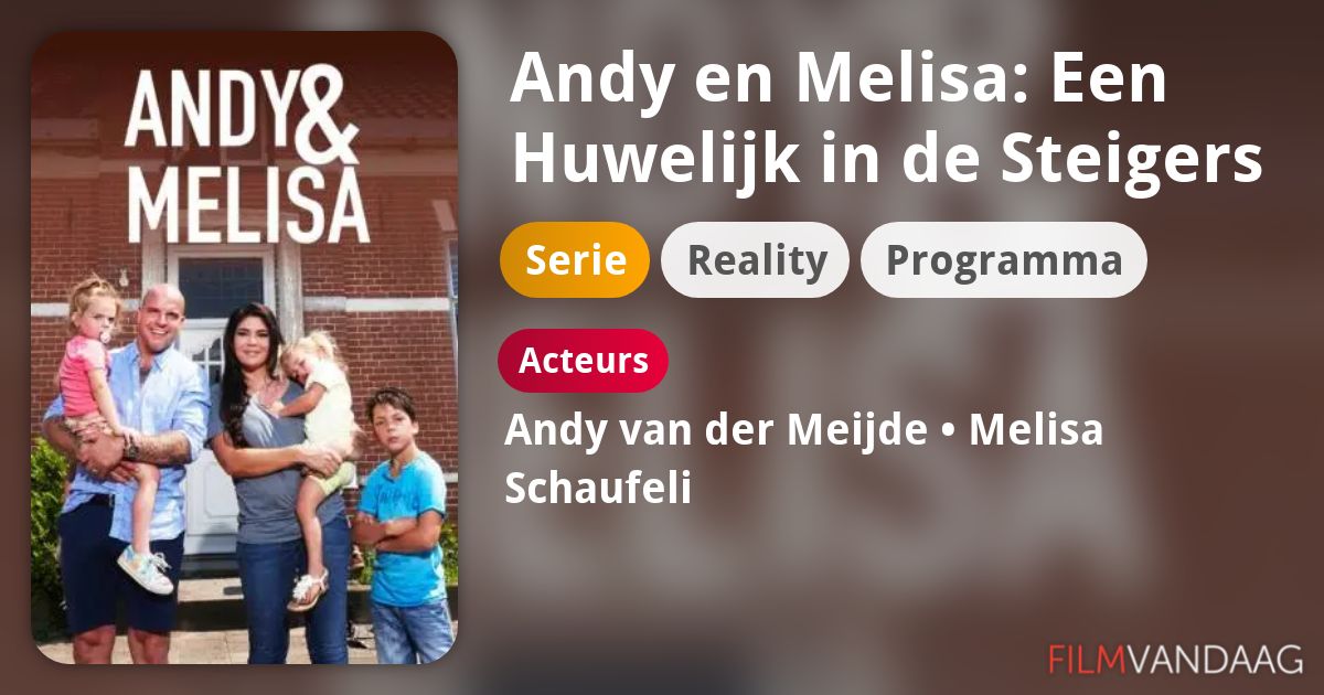 Melisa heeft een zoon (Nino) uit een eerdere relatie en heeft samen met Andy twee kinderen: Lilly en Rox. In Andy en Melisa zien krijgen wij een inkijkje in hun leven. Koop serie. Acteurs. 3 stemmen. Self. Andy van der Meijde. 1 stem. Self. Melisa Schaufeli. Meer acteurs. Seizoenen. Seizoen 1. 0 / 24. Seizoen 1. Seizoen 2. 0 / 8. Seizoen 2.