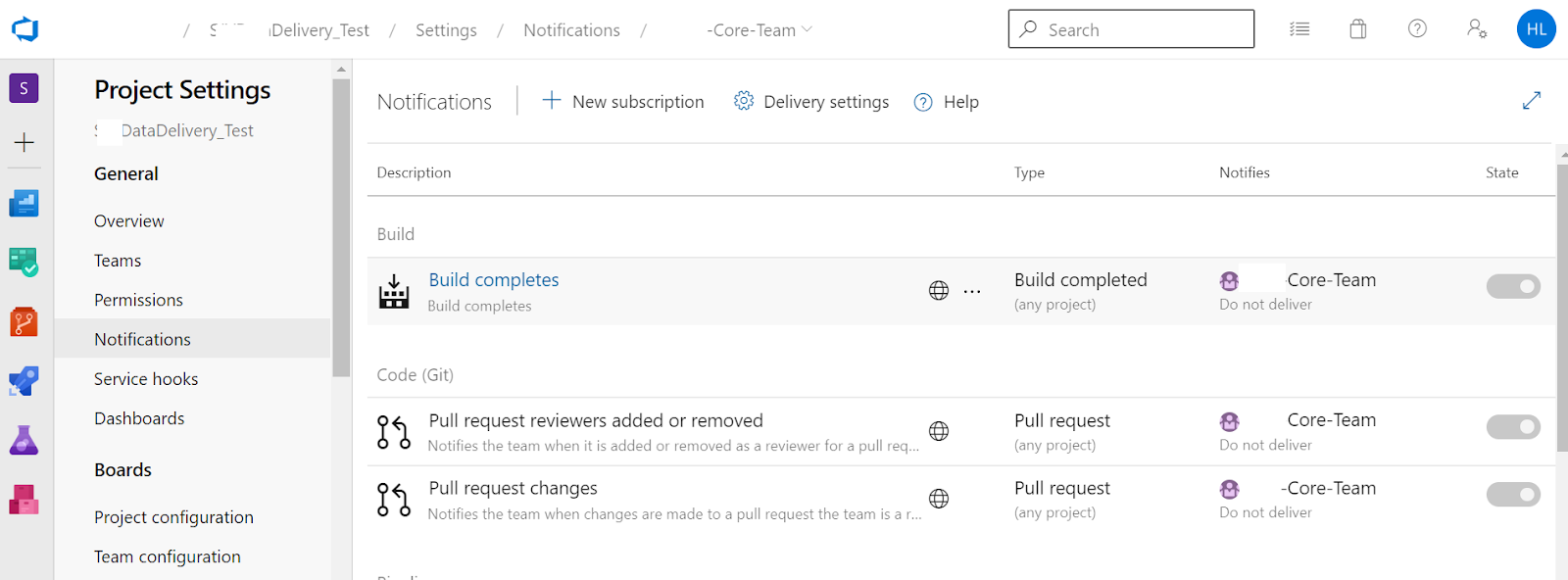 Manage notifications for a team, project, organization or collection Azure DevOps Microsoft