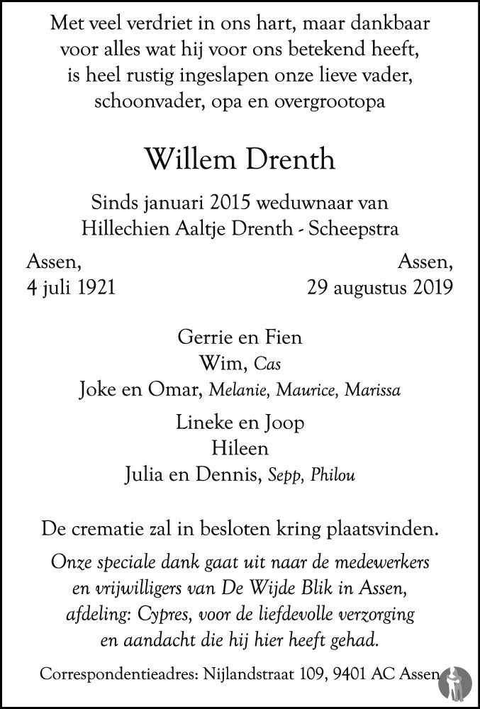 Willem Drenth 29082019 overlijdensbericht en condoleances Mensenlinq.nl