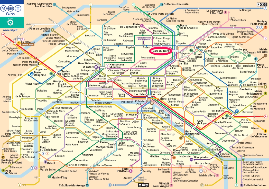 Métro Paris itinéraire de Gare du Nord à MontparnasseBienvenue