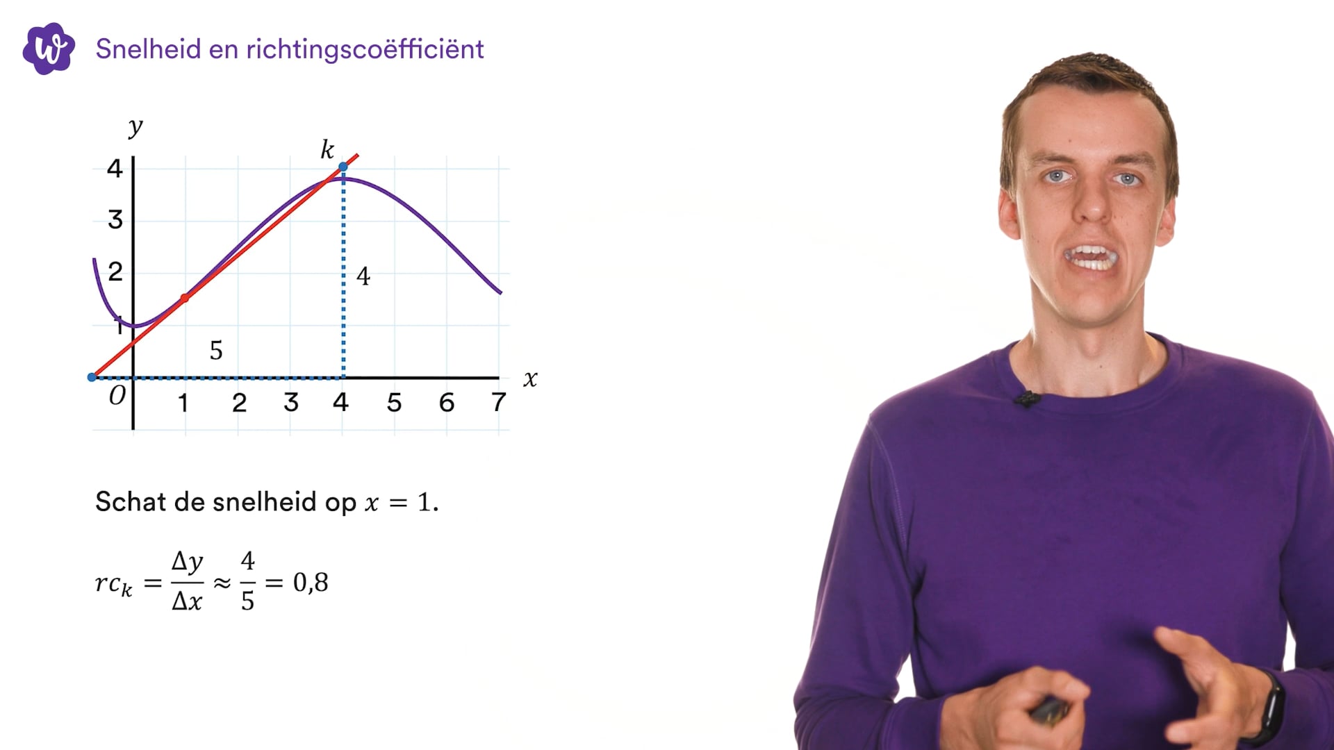 De richtingscoëfficiënt kan op twee manieren berekend worden: De gemiddelde richtingscoëfficiënt kan worden berekend door: De richtingscoëfficiënt op een exact punt kan worden berekend door de afgeleide: Tip! Bij een lineaire lijn is de richtingscoëfficiënt op een exact punt gelijk aan de gemiddelde richtingscoëfficiënt.