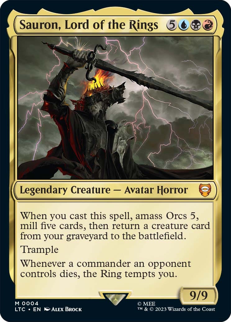 The Hosts of Mordor. The Hosts of Mordor Magic: The Gathering x The Lord of the Rings: Tales of Middle-Earth Deck Reveal! Traditional Foil Sauron, Lord of the Rings. Traditional Foil Saruman, the White Hand. Foil-Etched Sauron, Lord of the Rings Display Commander. Sauron, Lord of the Rings and Saruman, the White Hand are traditional foil cards.