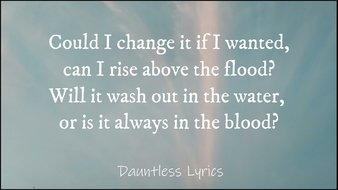 Will it wash out in the water, or is it always in the blood? I can feel love the I want, I can feel the love I need But it's never gonna come the way I am Could I change it if I wanted, can I rise above the flood? Will it wash out in the water, or is it always in the blood? How much like my brothers, do my brothers wanna be?
