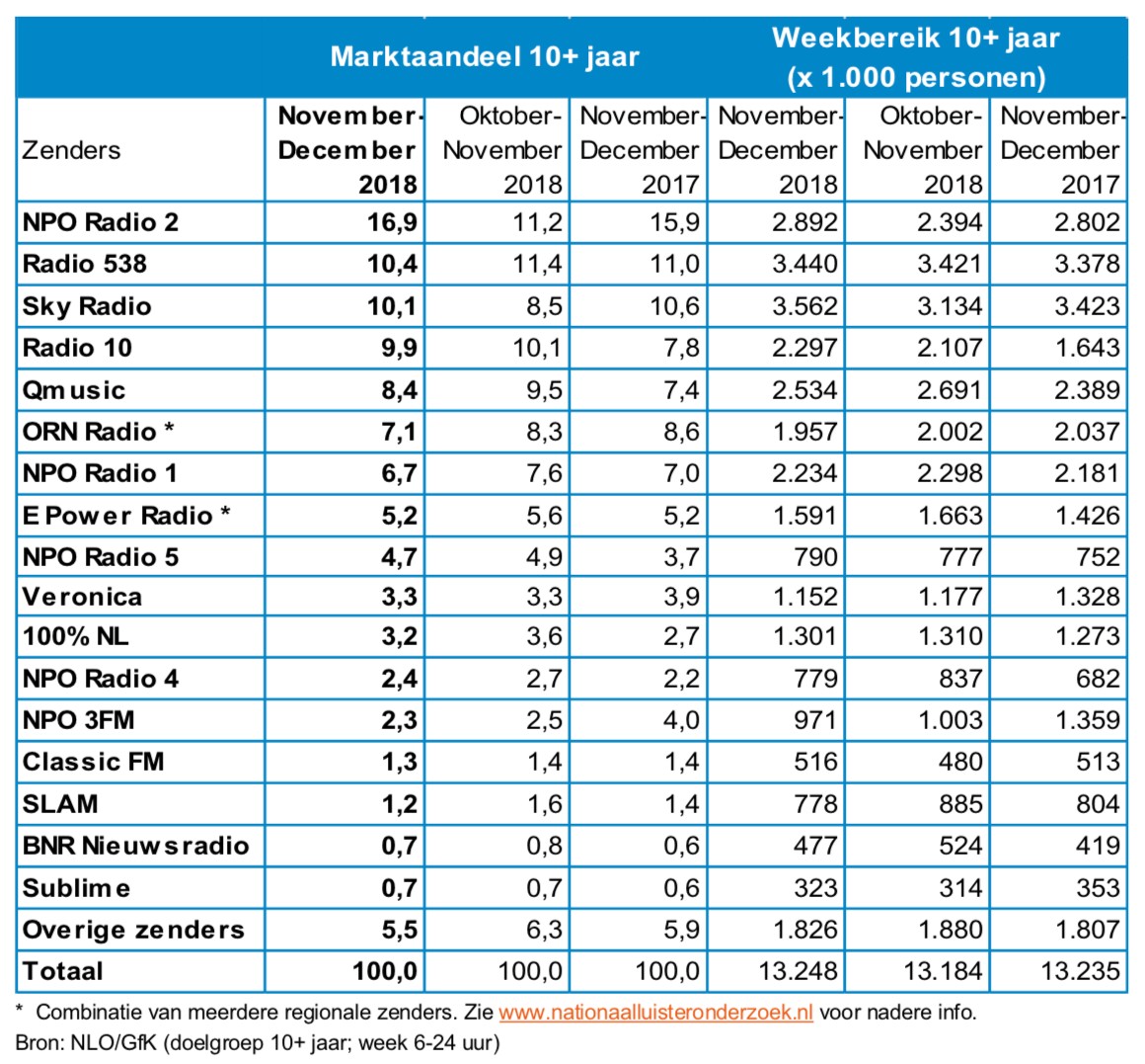 NPO Radio 2 best beluisterde zender van 2018 MarketingTribune Media