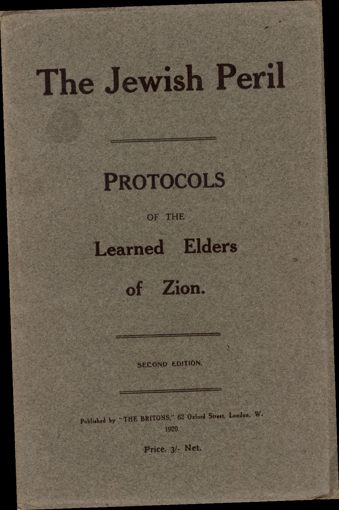The Protocols of the Elders of Zion is an anti-Semitic pamphlet published in Russia at the end of the 19th century. It purports to be the minutes of meetings held secretly by Jewish wise men plotting to control the world. Exposed many times as a forgery, the Protocols has nevertheless continued to be translated, published, and distributed all over the world, from the United States to Japan.