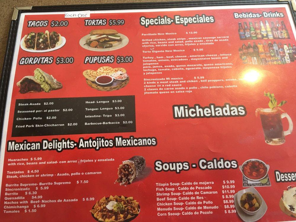 Menu at Mi Mexico Lindo restaurant, Bridgeport