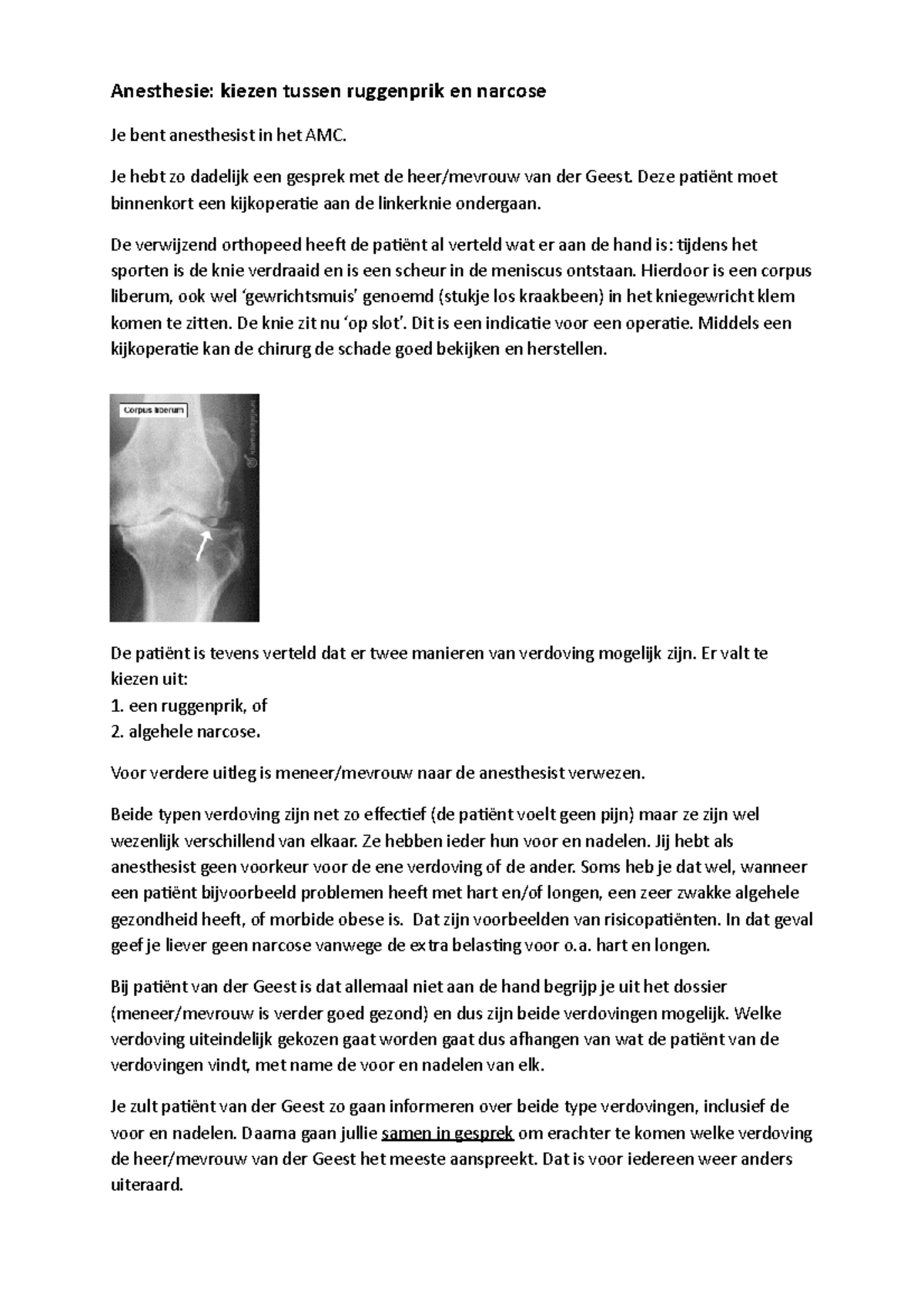CV3.1 Rol 1 anesthesist pt vd Geest verdoving Anesthesie kiezen tussen ruggenprik en