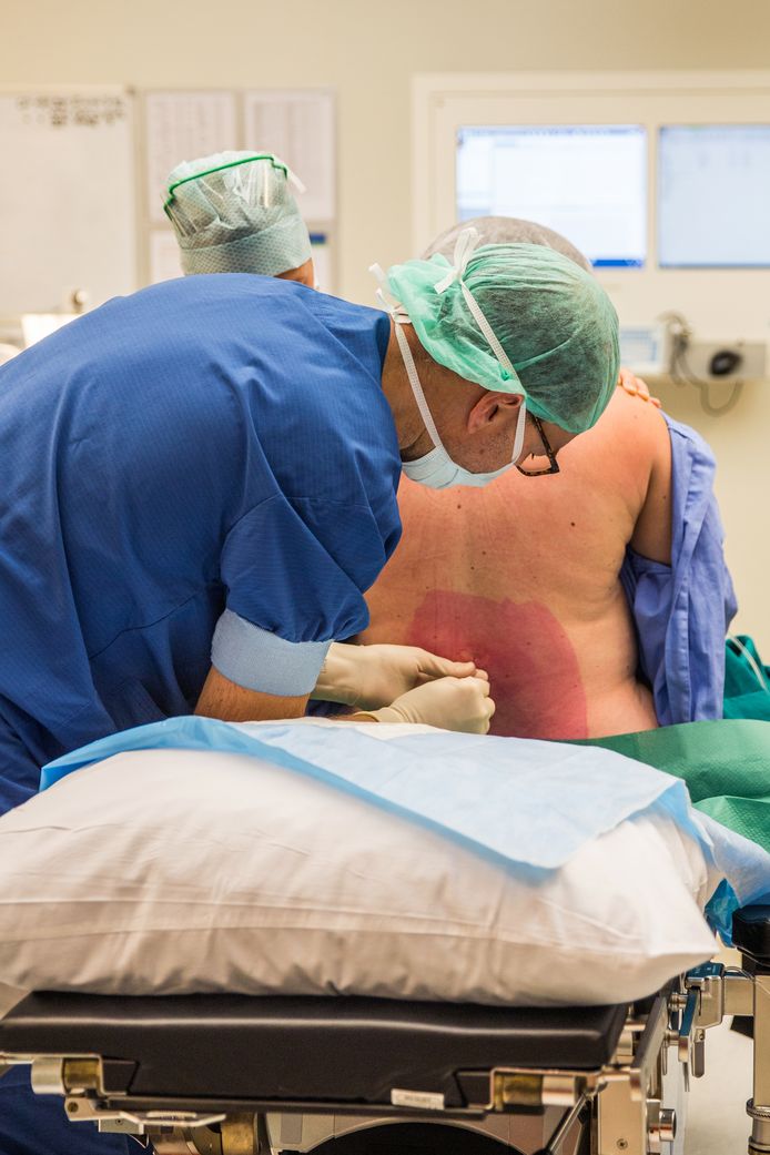 Bij een spinale ruggenprik wordt alleen uw onderlichaam verdoofd. Dit gebeurt via een prik in de onderrug. Hierbij worden de zenuwen naar uw onderlichaam, die zich in de 'spinale ruimte' bevinden, korte tijd uitgeschakeld. Door deze verdoving kunt u uw benen ook tijdelijk niet meer bewegen. Als u wilt, kunt u tijdens de operatie wakker blijven.