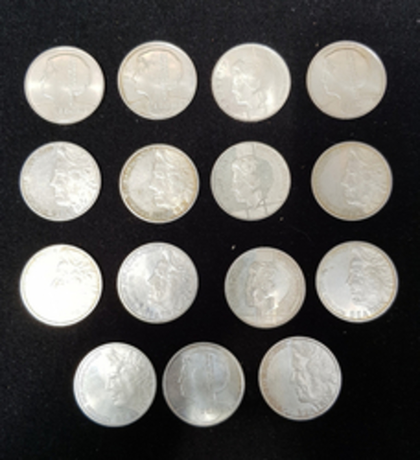 Deze munten zijn van verzilverd koper en zijn even groot als de zilveren munten. Alle zilveren en verzilverde tien euromunten zijn in Nederland een wettig betaalmiddel. Let wel op, de zilverwaarde van de munten kunnen de nominale waarde overstijgen. Voor de actuele zilverprijs kunt u contact met ons opnemen.