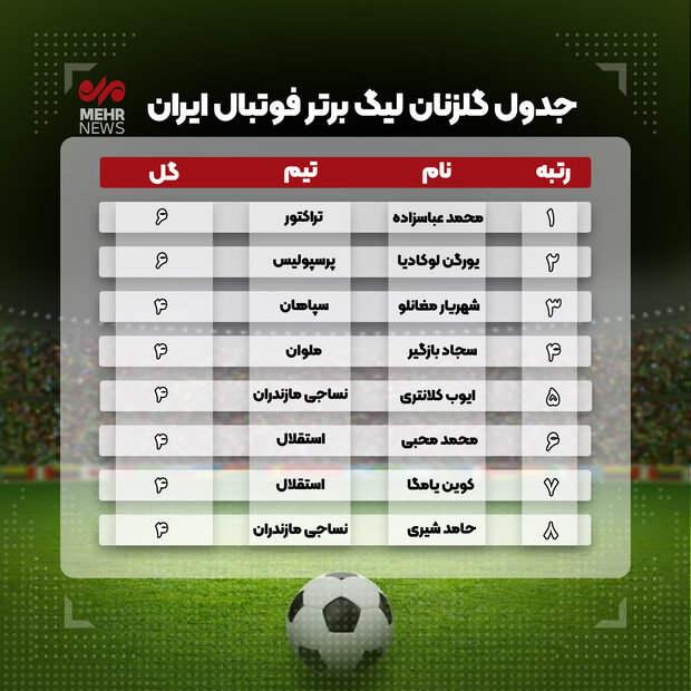 جدول گلزنان لیگ برتر فوتبال ایران در پایان نیم فصل